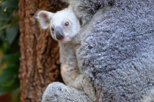 El pequeño tiene este color de pelaje muy inhabitual debido a genes recesivos. Se ha convertido en la mascota del zoo y de los internautas de toda Australia. El ente de turismo oficial, Tourism Australia recibe sugestiones de nombres para bautizarlo en su pàgina Facebook.